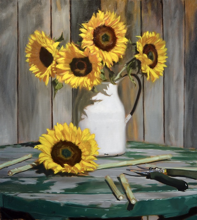 Sunflowers, 18×20, oil on linen, 2013 © Mark Reeder