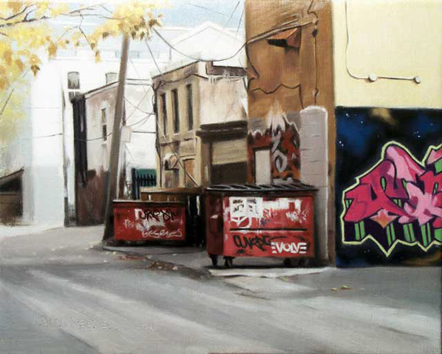 When I lived in Toronto I didn’t really drive all that much. When I had to go somewhere I would usually travel the city by subway, which is always interesting. I also walked a lot. I loved walking through the city, and I would usually take short cuts through alley ways and side streets. I found these routes much more interesting than the facades of main streets with their ‘fake fronts’. By taking such detours you could see and walk through the character of the city as well as part of it’s history. It also gives you an opportunity to see some graffiti art along the way.